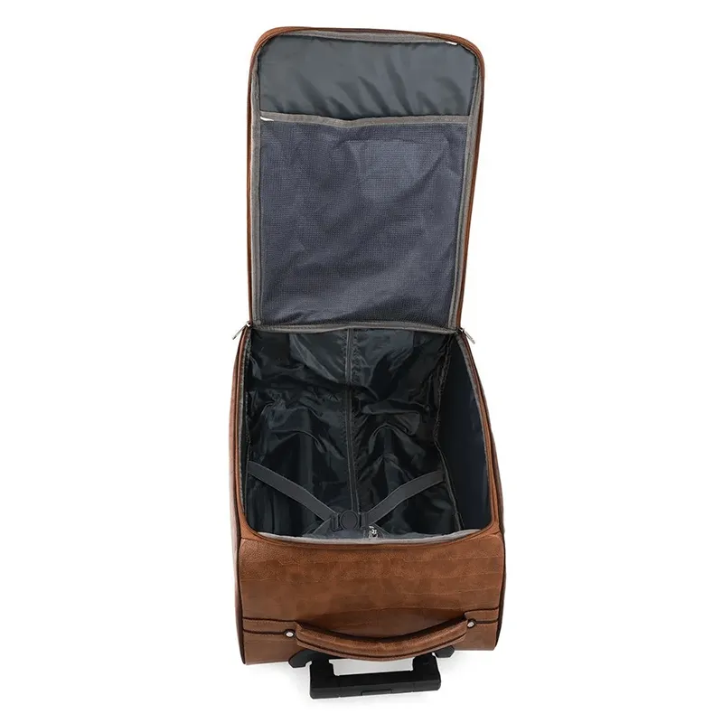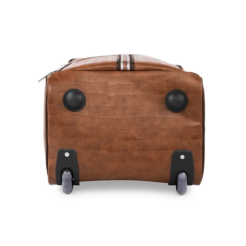 The elegant leather-like texture makes this trolley travel bag a premium selection for corporate gifting bags, custom branded luggage, and bulk travel bag manufacturing requirements. It supports logo printing, embroidery, or branding patch, making it perfect for companies wanting branded travel kits.