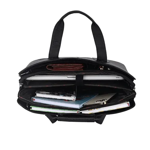 The spacious interior includes a padded laptop compartment that safely holds laptops and documents, along with multiple internal sections for files, notebooks, chargers, and accessories. Smooth high-quality zippers ensure easy access, while reinforced handles provide a comfortable and professional carry experience. Side metal hooks allow optional shoulder strap attachment, adding versatility.