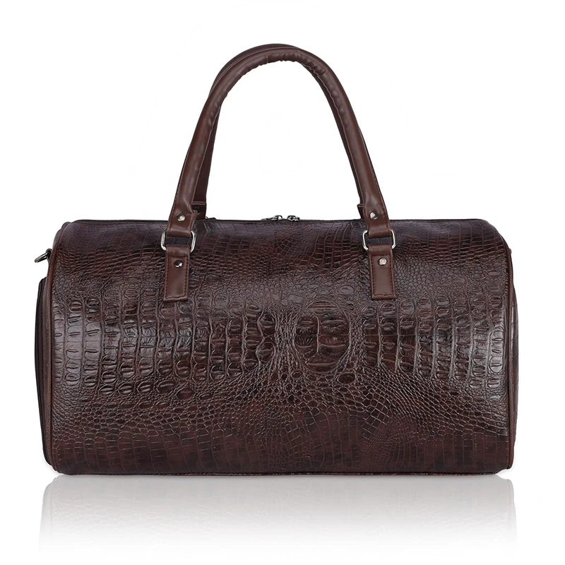 Premium Dark Brown Croco Texture Leatherette Duffle Bag (Bulk Corporate Gifting + Custom Logo Branding)
