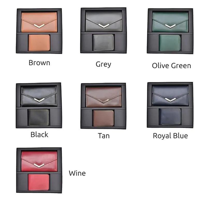 The product is available in multiple stylish colours such as brown, grey, olive green, black, tan, royal blue, and wine. Businesses can also add their company logo on the wallet or packaging to create a strong brand impression.