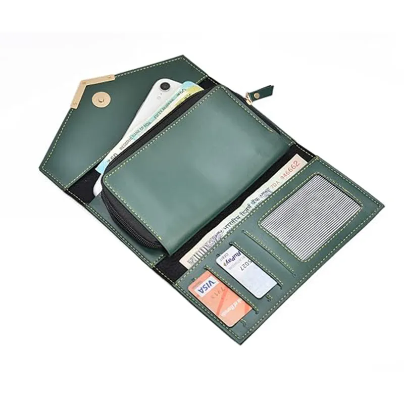 The wallet and clutch are made from high-quality leather finish material that gives a rich and professional look. The clutch has multiple compartments for cash, cards, and small essentials. It also includes a secure zip pocket to keep valuables safe. The wallet is compact and easy to carry in pockets, handbags, or office bags.